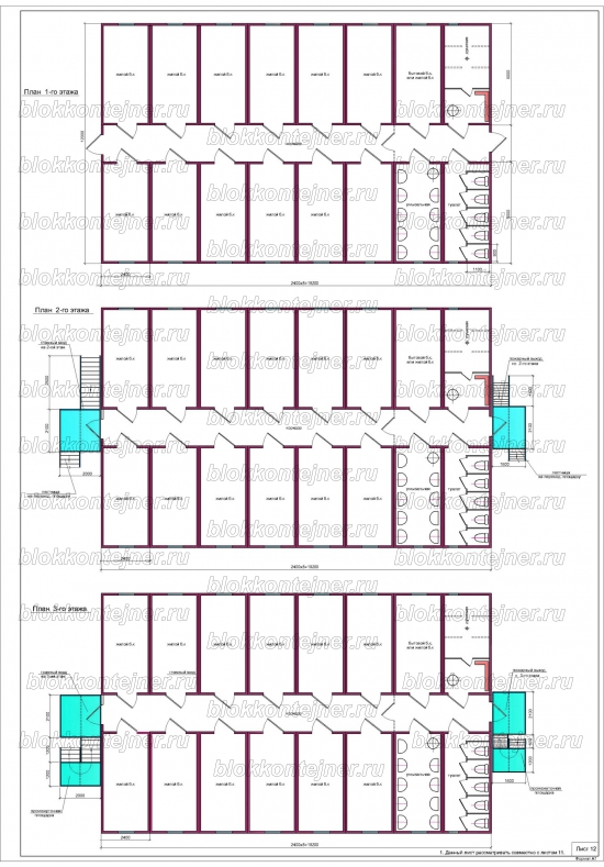 Общежитие на 150 человек, трехэтажное из 36 БК